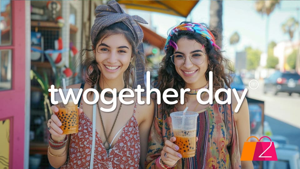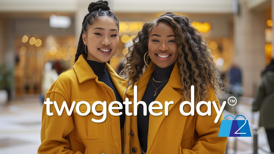 Twogether Day is a promotional event aimed at driving foot traffic to malls in the US, leveraging the collective appeal of group shopping incentives such as BOGO (Buy One, Get One), two-for-one deals, 50% off a second item, and more.